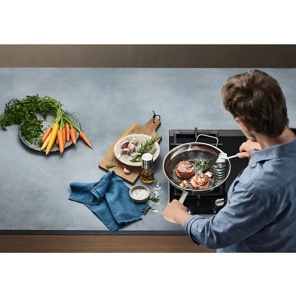 Wok en inox 28cm acier Wmf – La poêle wok Profi Resist Wmf 1756486411 réunit les avantages d’une poêle en acier inoxydable et du revêtement antiadhésif. Le revêtement antiadhésif délicat est protégé par la structure nid d’abeilles en acier inoxydable de qualité. La surface de cuisson est donc durable et résiste aux éraflures et rayures. La cuisson nécessite peu de matière grasse. Rien n’accroche à la surface de cuisson et le nettoyage est un jeu d’enfant. La poêle Profi Resist vous permet de réussir la cuisson d’un steak juteux et de tous les autres plats qui doivent être saisis à haute température. La poêle en matériau multicouches est compatible tous feux dont induction. Disponible en 2 tailles, comme poêle à four ou wok. – Type de produit : Wok.Matière : Cromargan inox 18/10, aluminium et acier.Revêtement : Anti-adhésif.Fond diffuseur TransTherm.Tous feux dont induction.Convient au four jusqu’à 250°C sans couvercle.Hauteur (cm) : 7.Diamètre (cm) : 28.Couleur : acier.Poignée et contre-poignée ergonomiques.Bords verseurs.Passe au lave-vaissellePoids Net : 1,70 Kg.Poids Brut : 1,80 Kg.