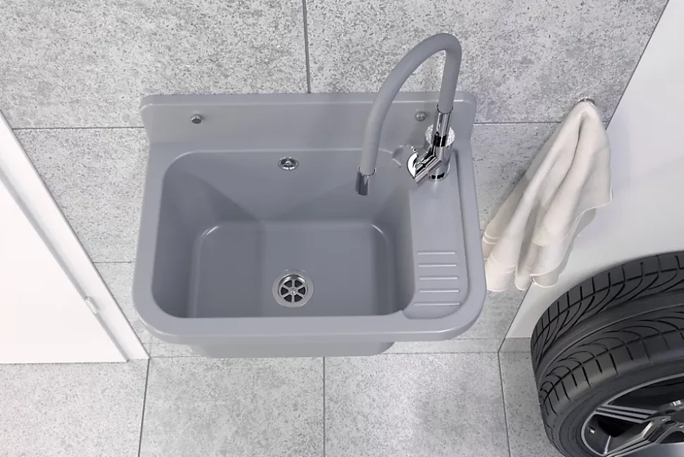 Description du produitL’évier Paron Granitan gris avec robinet extensible combine design moderne et fonctionnalité pratique. Fabriqué en polypropylène de haute qualité, il est résistant aux produits chimiques, idéal pour un usage domestique ou dans les espaces publics. Avec son robinet Gradus extensible et flexible, cet évier offre une grande liberté de mouvement et un confort optimal. L’ensemble inclut les accessoires de montage, comme un siphon équipé d’une connexion supplémentaire pour lave-vaisselle ou machine à laver, ce qui accroît sa polyvalence.Caractéristiques principalesDesign élégant qui s’adapte à différents styles d’intérieurRobinet en chrome-gris avec mécanisme interne en céramique, durable et fiableBec pivotant à 360° pour une utilisation flexibleFabriqué dans un matériau robuste et résistant aux produits chimiquesAccessoires inclus : évier et robinetConvient aux cuisines, salles de bain et espaces professionnelsDimensions : 50 cm de longueur x 34 cm de largeurPoids total (emballage compris) : 2 kgPourquoi choisir ce produit ?Cet évier offre un excellent rapport qualité-prix grâce à sa durabilité et son design soigné. Il est conçu pour répondre aux besoins quotidiens tout en ajoutant une touche moderne à votre espace. La flexibilité du robinet et les options de connexion supplémentaires augmentent sa praticité. Que ce soit pour une utilisation domestique ou professionnelle, l’évier Paron Granitan est une solution idéale, alliant style, fonctionnalité et durabilité.